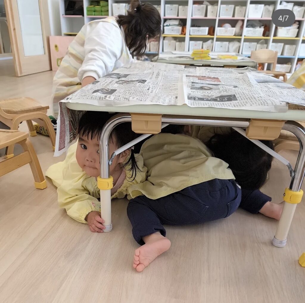 • ゆき組は倒れそうな物や窓から離れて子どもたちを先生みんなで守りました!
