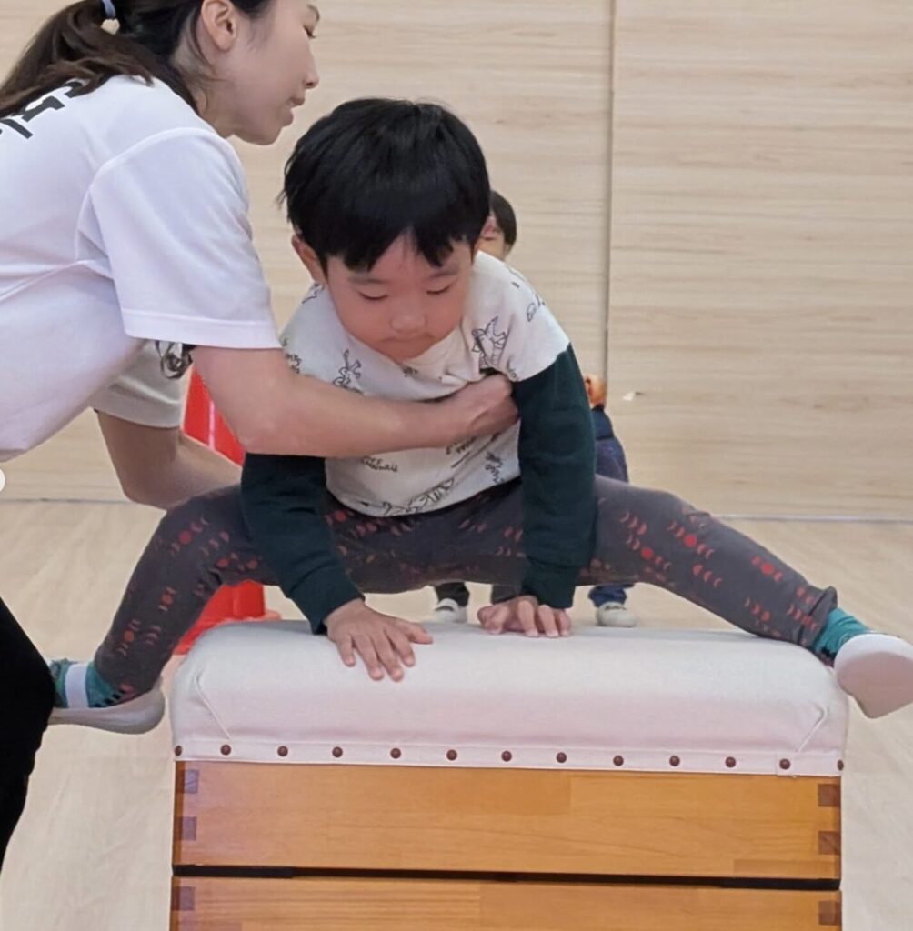 まだまだ、先生に補助してもらっていますが、 補助なしで跳び箱がとべるようになる日も近いです‼️
