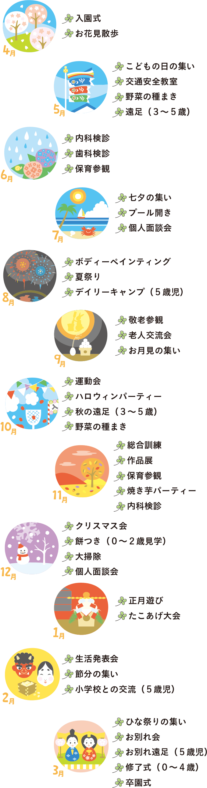 南清水にじいろキッズこども園、年間行事月間リスト